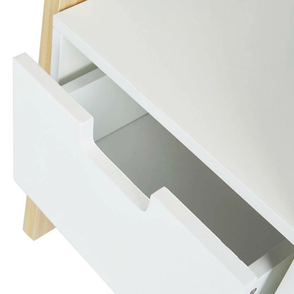 Kompakte Standgarderobe in zeitlosem & natürlichem Design Schaffen Sie mit dieser Garderobe Platz und Ordnung in Ihrem Zuhause. Die niedrige Standgarderobe ist dabei ein kleines Stauraum-Wunder. An Kleiderstange und Haken haben Sie Ihre Jacken und Mäntel immer ordentlich aufgehängt. Accessoires wie Schals und Mützen oder Krimskrams finden in der geräumigen Schublade und den Ablagefächern Platz. Auf der offenen Ablage haben Sie Ihre Handtasche immer in Griffnähe. Die helle Farbgebung strahlt eine gewisse Wärme in Flur, Schlafzimmer oder Büro aus.