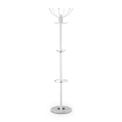 - Design: Schicker Jackenständer mit Marmorfuß in schlichtem Weiß – Mit praktischem Schirmständer
