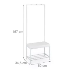 - Basics: Gesamtmaße der Garderobe HxBxT: ca. 157 x 60 x 34,5 cm – Schuhbank bis ca. 90 kg belastbar