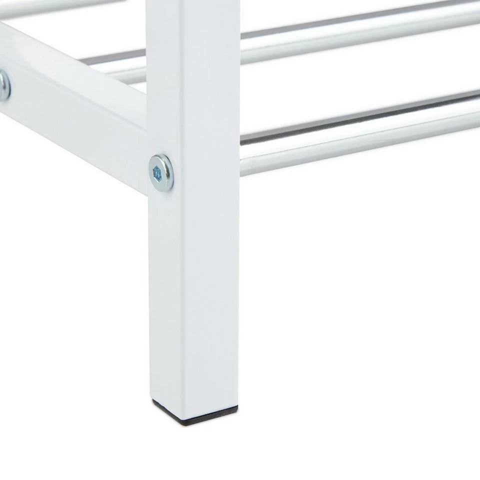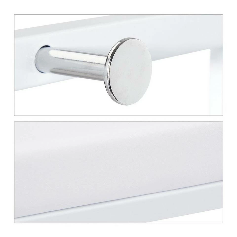 Weißer Kleiderständer mit Schuhbank Sorgen Sie für einen ordentlichen Eingangsbereich im Clean Chic mit dieser modernen Kleiderablage. Die weiße Standgarderobe verfügt über 3 Haken sowie eine Ablage. Somit haben Sie ausreichend Platz, um Jacken, Taschen, Schals, Schuhe sowie Aufbewahrungsboxen unterzubringen. Zudem lässt es sich gemütlich auf der Sitzbank der freistehenden Garderobe Platz nehmen während des Schuhe An- oder Ausziehens. Mit ihrem schlicht-eleganten Look in Weiß und den silbernen Details überzeugt die Kleidergarderobe nicht nur in Flur und Diele, sondern ebenso als Umkleidebank im Schlafzimmer.