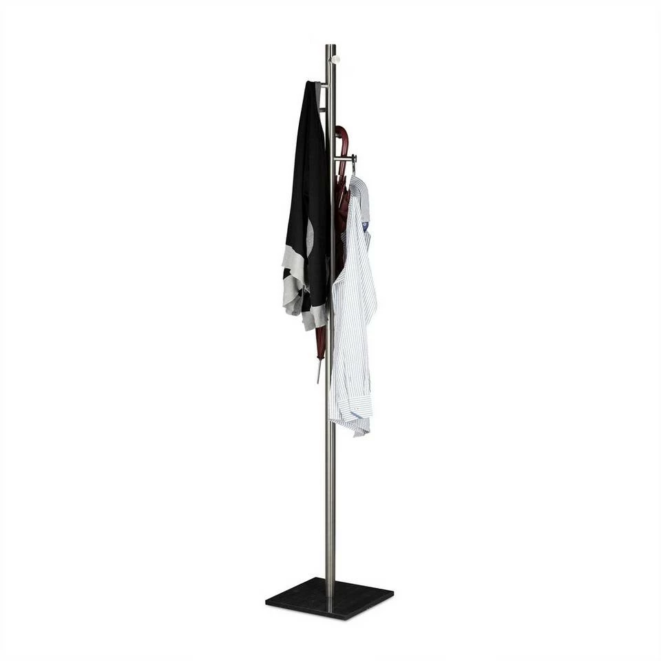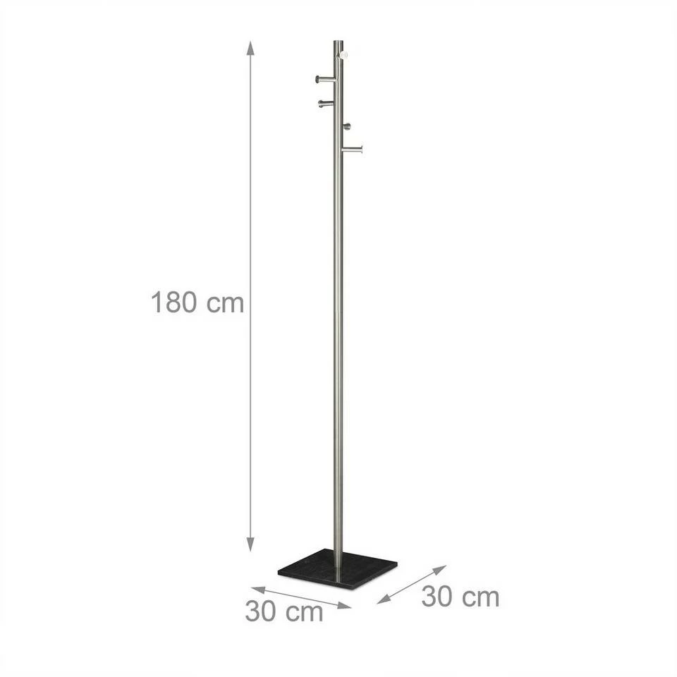 Garderobenständer PIERRE Die Produkte der PIERRE-Kollektion bringen Eleganz und Luxus in Ihr Zuhause. Besonderes Highlight ist dabei der schwere Standfuß aus schönem dunklem Marmor. Stellen Sie diese elegante Garderobe in den Flur, die Diele oder ins Büro. Die 5 Kleiderhaken mit einer Länge von jeweils 7 cm bieten ausreichend Platz für viele Jacken, Mäntel, Schals, Mützen und andere Kleidungsstücke. Auch im Schlafzimmer oder im Wartezimmer macht die Standgarderobe eine gute Figur.