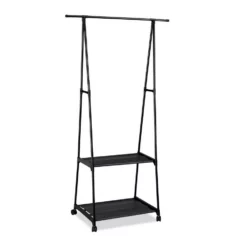 Kleiderständer auf Rollen mit 2 Ablagen Der praktische Kleiderwagen ist ein echtes Stauraumwunder. Die stabile Kleiderstange eignet sich zum Aufhängen von Hemden, Blusen, Shirts und Jacken. Die 2 Vliesablagen bieten genügend Stauraum für Aufbewahrungsboxen, Schuhe, Taschen und andere Accessoires. Der Rollgarderobenständer lässt sich einfach verschieben und verfügt über 2 feststellbare Rollen. Ob im Flur, Schlaf- oder Ankleidezimmer – Dank seines zeitlosen Designs macht der Garderobenwagen überall eine gute Figur.
