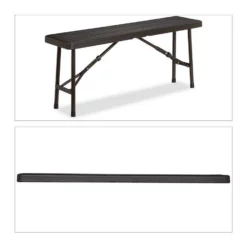 Schmale Klappbänke im 2er Set Die Kunststoffbänke in dunkler Holzoptik sind wetterfest und somit perfekt für die Gartensaison. Auch auf Ihrem Balkon machen die nur 1 Meter breiten Bänke eine gute Figur. Die praktische Klappfunktion schafft schnell Sitzplätze und sorgt auch für ein platzsparendes Verstauen. Dank der gummierten Enden zerkratzt auch der Boden bei Feierlichkeiten Indoor nicht. Die Bierzeltgarnitur ist eine gute Ergänzung für kleine Tische und perfekt, wenn es mal eng wird.