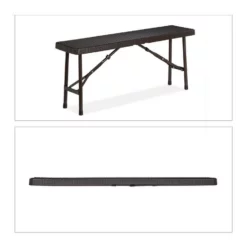 Bierbank Set für Indoor und Outdoor Die schlichten Sitzbänke in Rattan-Optik sollten in keinem Haushalt fehlen. Bei Feiern sollte auch der Überraschungsbesuch einen Sitzplatz bekommen. Die Faltbänke lassen sich ganz einfach aufstellen und nehmen vor allem im eingeklappten Zustand wenig Platz weg. Durch die gummierten Füße wird auch Ihr guter Boden geschützt. Im Freien sind die wetterfesten Bänke vor allem im Sommer perfekt für einen ausgelassenen Grillabend. Die dunkle Farbe ist unempfindlich bei Schmutz.