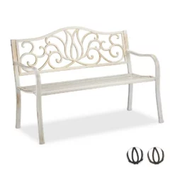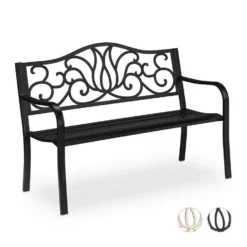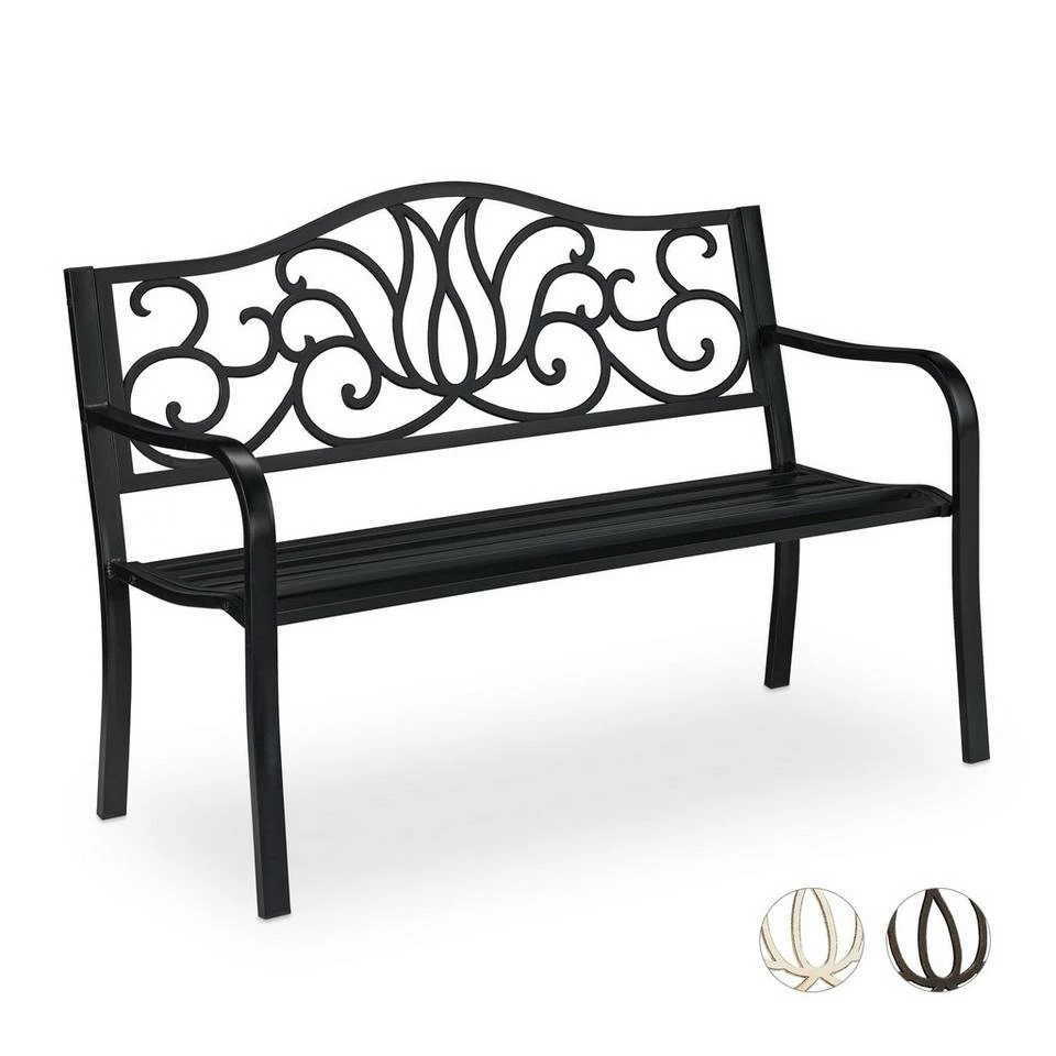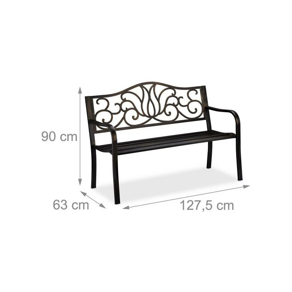 Dekorative 2er Sitzbank für draußen Sich im Freien aufzuhalten, ist gerade im Sommer eine schöne Zeit, um die Seele baumeln zu lassen und zu entspannen. Mit der schicken Gartenbank finden 2 Personen bequem Platz und können sich eine Auszeit vom stressigen Alltag nehmen. Die robuste Ruhebank ist für den Garten, die Terrasse und den Balkon geeignet. Durch die Rücken- und Armlehnen ist die Metallbank besonders gemütlich. Das auffällige Design mit antikem Charme bezaubert einfach.