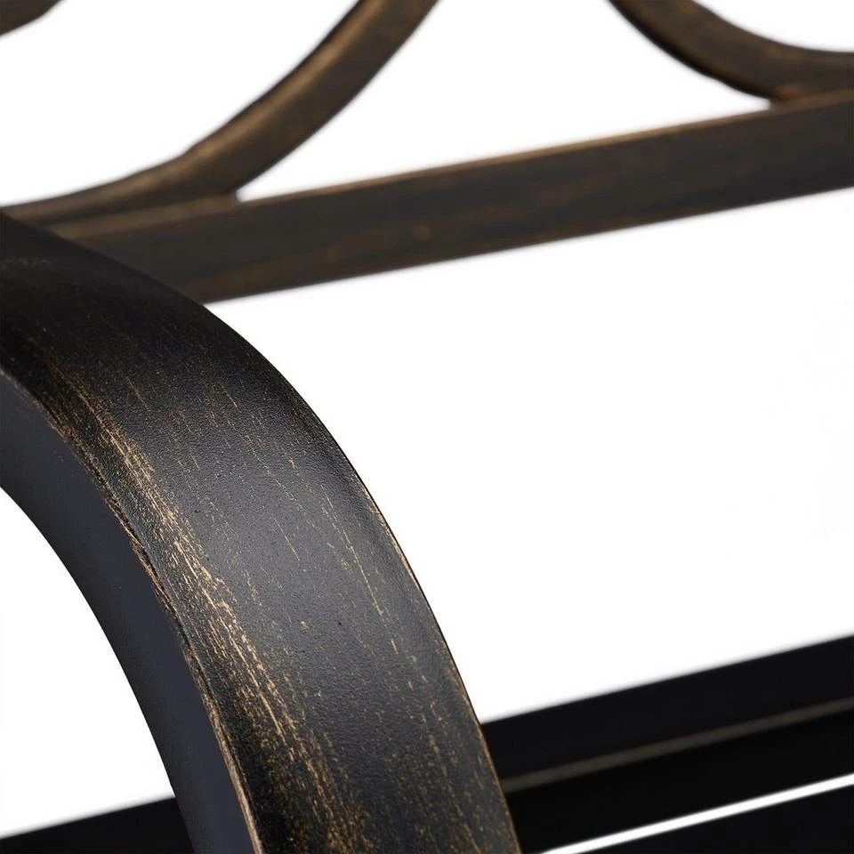 - Dekorativ: Geschwungene Ruhebank in Schwarz-Bronze – Rückenlehne verziert mit schönem Rankmuster