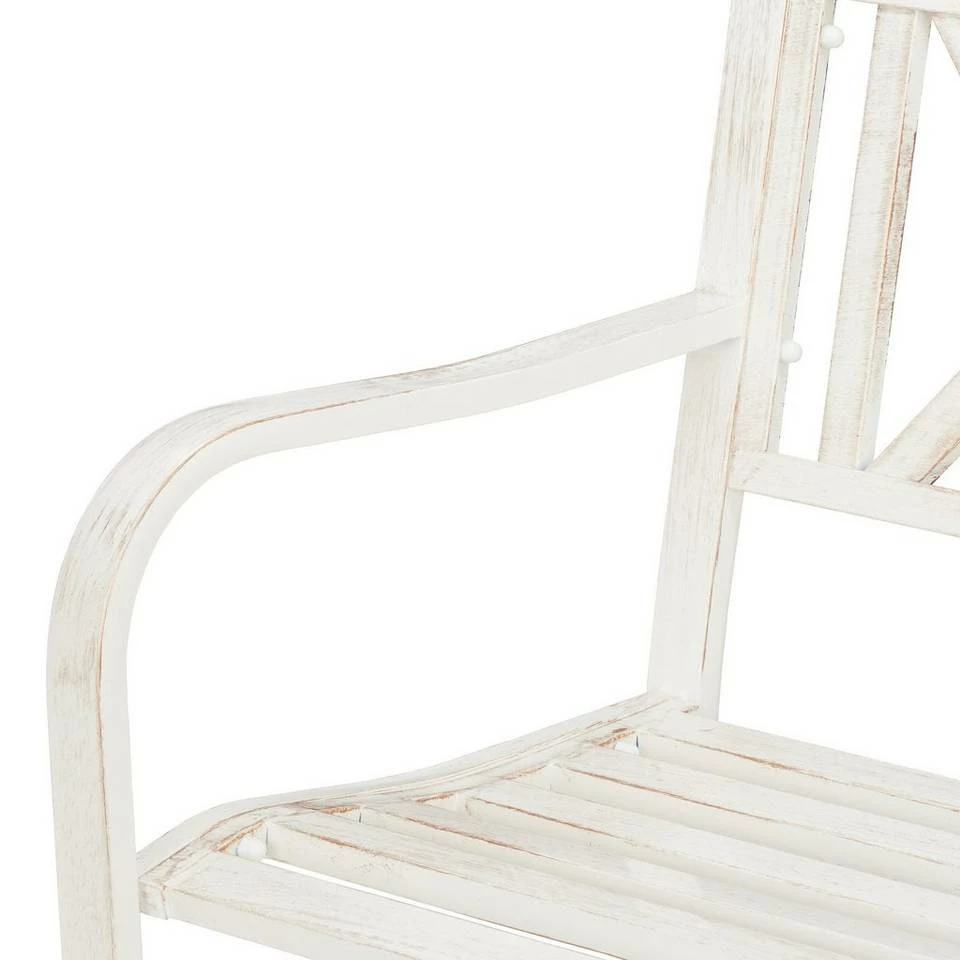 - Dekorativ: Geschwungene Ruhebank in antikem Weiß-Bronze – Rückenlehne verziert mit gekreuztem Muster