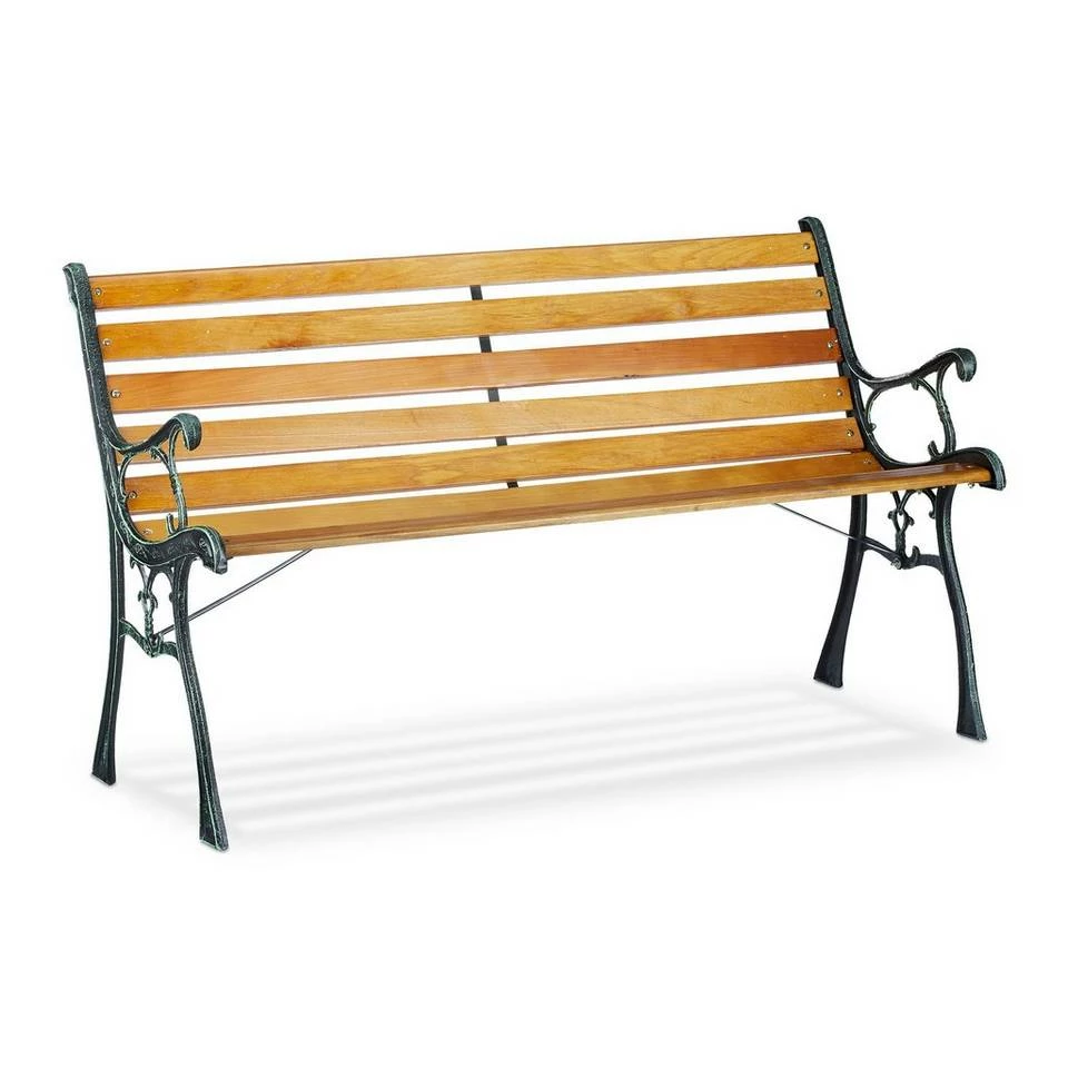 - Basics: Bank mit Holzstreben und stabilem Rahmen aus Gusseisen – Größe HxBxT ca. 73,5 x 126 x 52,5 cm
