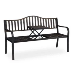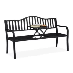 - Basics: Stabile Metallbank und Gartentisch in einem – HBT ca. 89 x 150 x 58,5 cm – In Schwarz-Bronze