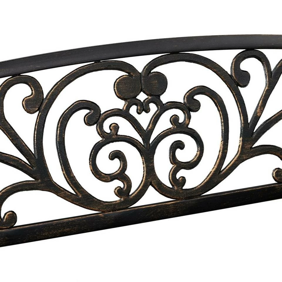 - Dekorativ: Geschwungene Ruhebank in Schwarz-Bronze – Rückenlehne verziert mit schönem Rankmuster