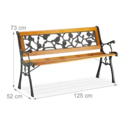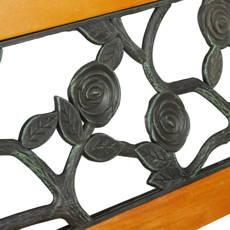 - Basics: Holzbank mit Gestell aus Gusseisen – Rosenverzierung aus PVC – HxBxT: ca. 73 x 125 x 52 cm