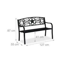 - Details: Stabile Bank aus Stahl und Guss in Schwarz – Größe gesamt H x B x T: ca. 87 x 127 x 55 cm