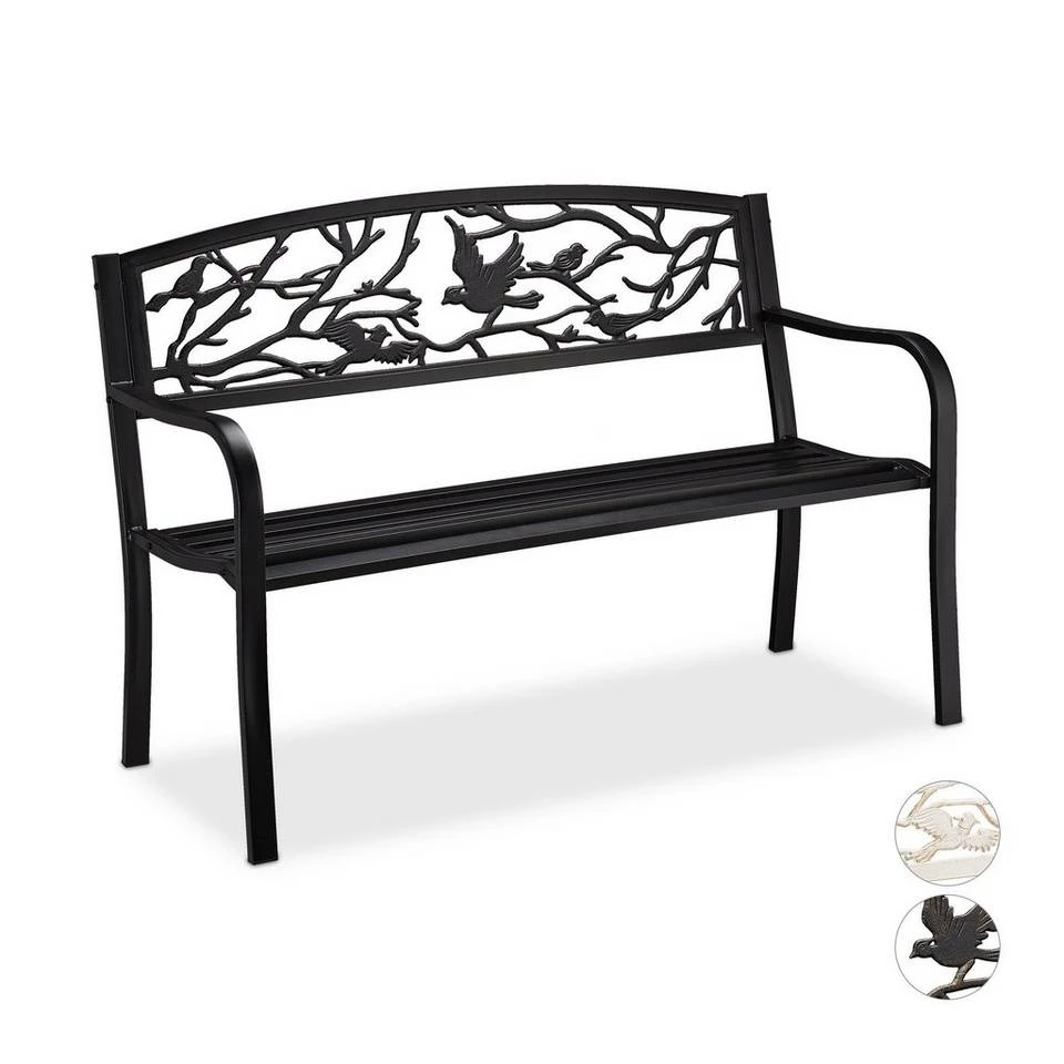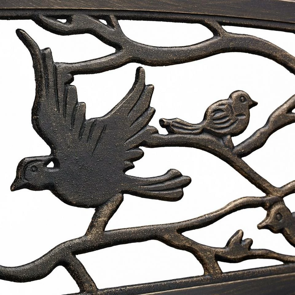 - Romantisch: Gemütliche Ruhebank in Schwarz-Bronze mit hübschen Deko Vogel-Ornamenten in der Rückenlehne