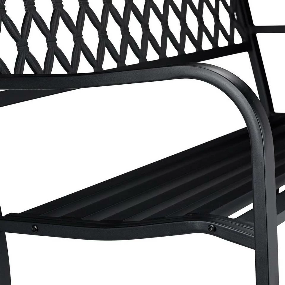 Großzügige Verandabank für 2 Personen Lassen Sie sich von der hochwertig verarbeiteten Sitzbank begeistern. Das Stahlgestell und die Lehne aus Gusseisen geben der Bank Stabilität. Die kunstvoll gestaltete Rückenlehne im Vintage Flechtdesign ist ein hübscher Blickfang auf Ihrer Terrasse. Kuscheln Sie sich auf den Zweisitzer und verbringen Sie romantische Stunden an lauen Sommerabenden bei einem kühlen Getränk. Die Bank fügt sich perfekt zwischen duftende Blumenbeete im Garten oder auf dem Balkon ein.