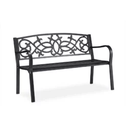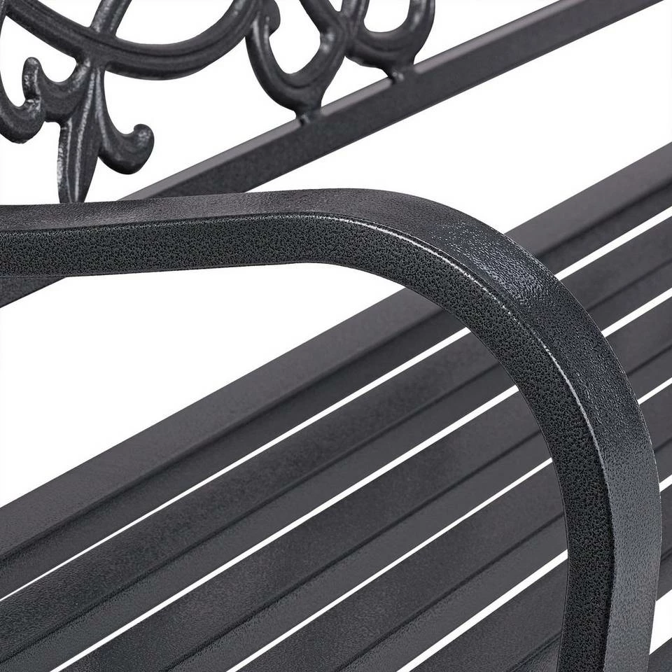 Romantische Balkonbank für 2 Personen Die bequeme Sitzbank lädt zum sommerlichen Entspannen zu zweit ein, egal ob auf dem Balkon, der Terrasse oder im Garten. Durch die Sitzfläche aus Stahl ist die Bank besonders stabil und robust. Die Gusseisen-Rückenlehne mit geschwungenen Ornamenten sorgt optisch für einen dekorativen Vintage Touch. Die Parkbank überzeugt nicht nur mit ihrem Strukturlack Design, sondern auch mit ihrer Wetterfestigkeit.