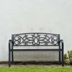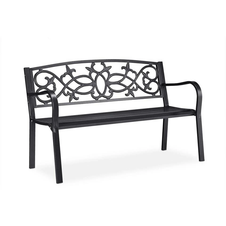 - Romantisch: Dunkelgraue Retro Ruhebank für 2 Personen mit nostalgischen Ornamenten in der Rückenlehne