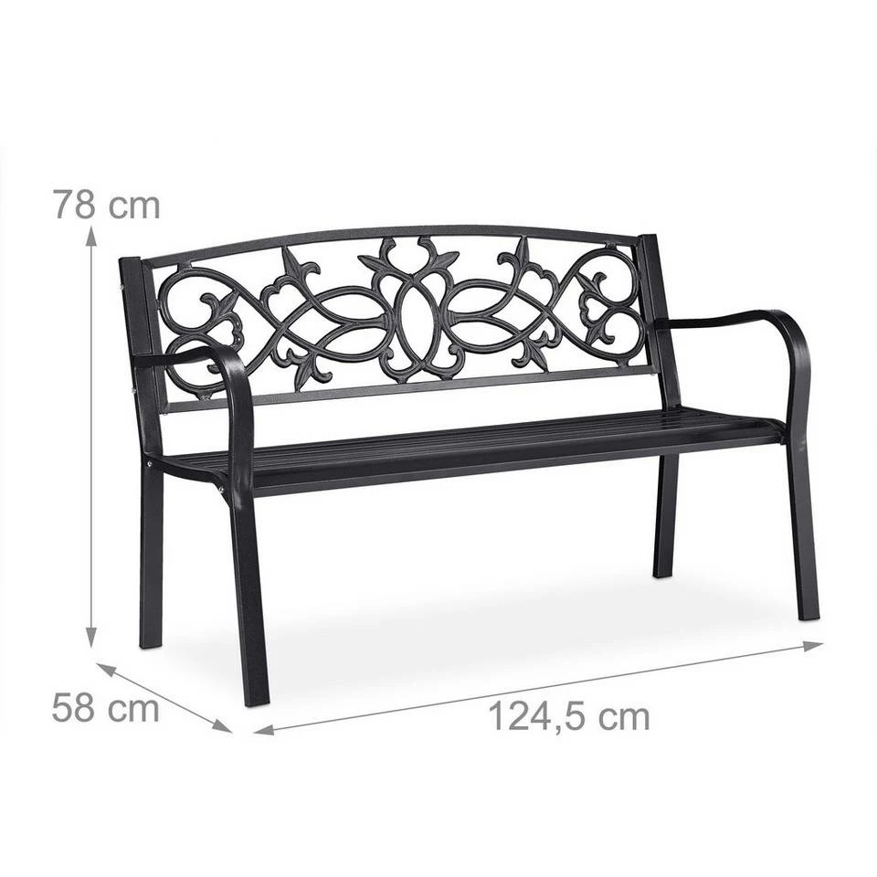 - Basics: Premium Balkonbank aus robustem Stahl und Gusseisen – Größe HxBxT: ca. 78 x 124,5 x 58 cm