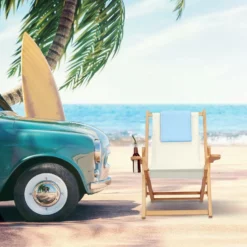 - Basics: Stabiler Strandstuhl aus natürlichem Buchenholz und Polyester – Je bis max. 100 kg belastbar