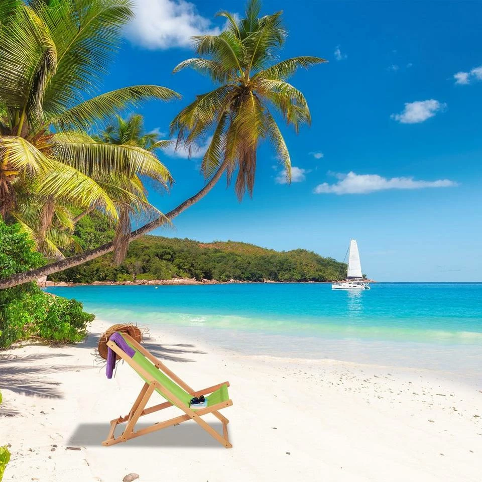 - Robust: Stabiler Strandstuhl aus natürlichem Buchenholz und Polyester – Bis max. 120 kg belastbar