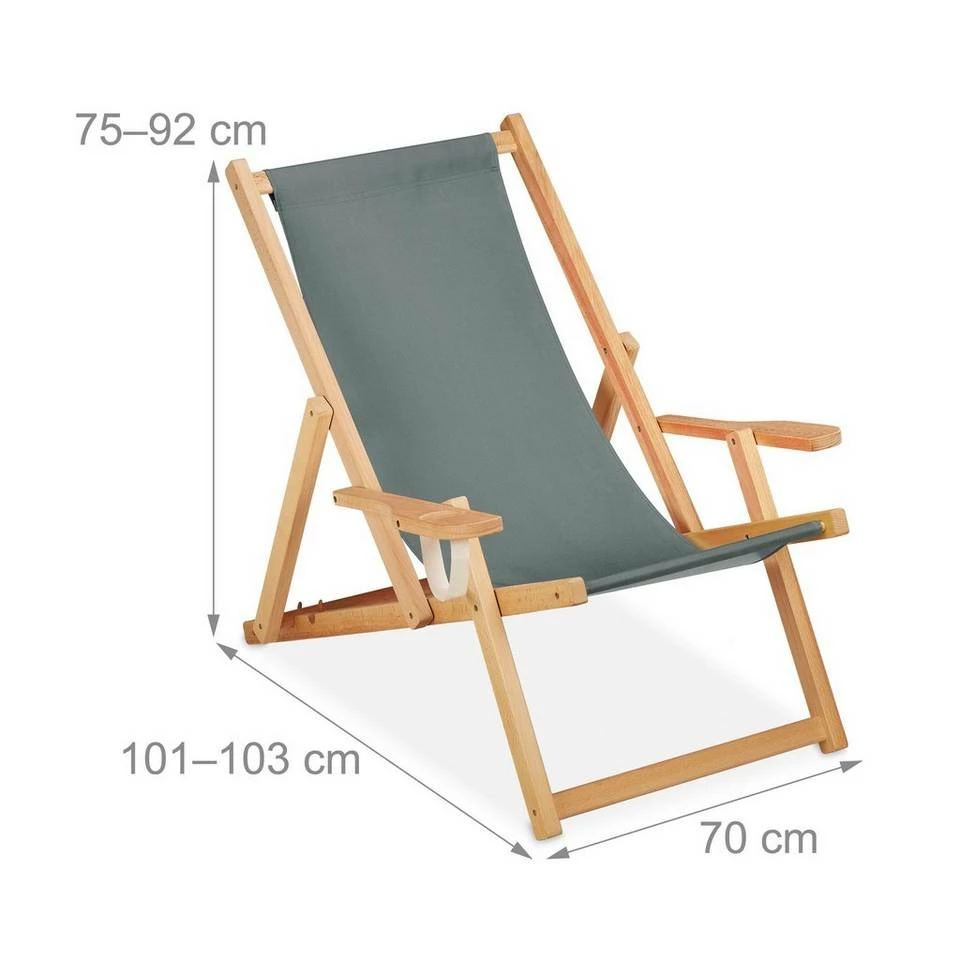 2er Set Sonnenliegestühle für den Garten Wer verbringt die warmen Monate nicht gern an der frischen Luft? Nutzen Sie diese Zeit und machen Sie es sich mit diesem 2er Set Holzliegestühle bequem. Perfekt zum Sonnen und Entspannen, bieten Ihnen die Klappliegen die Möglichkeit in 3 verschiedenen Einstellungen die für Sie passende Liegeposition zu finden. Die Relaxstühle aus Buchenholz bieten zusätzlichen Komfort dank der Armlehnen und des Getränkehalters. Außerdem können sie zusammengeklappt und platzsparend gelagert werden.