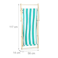 - Basics: Liegestuhl Höhe: ca. 68, 76, 83 cm – Breite ca. 58 cm – Aus Holz mit gestreiftem Stoffbezug