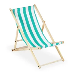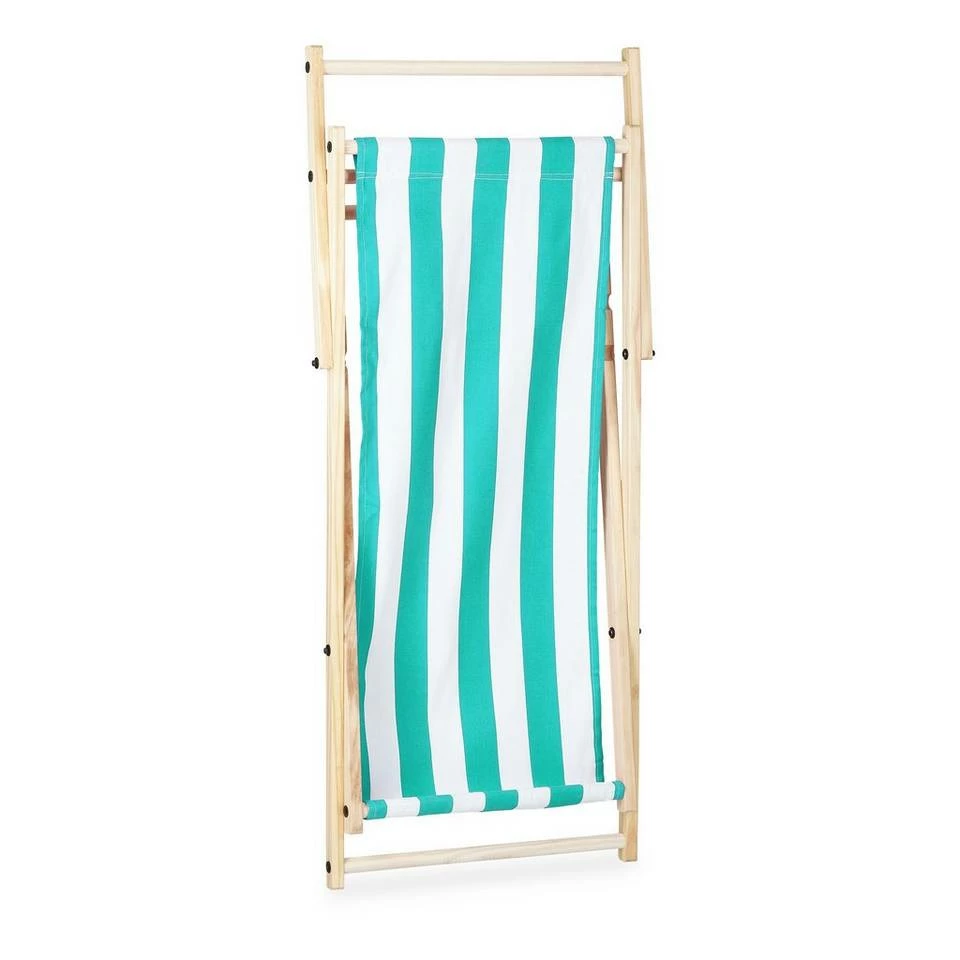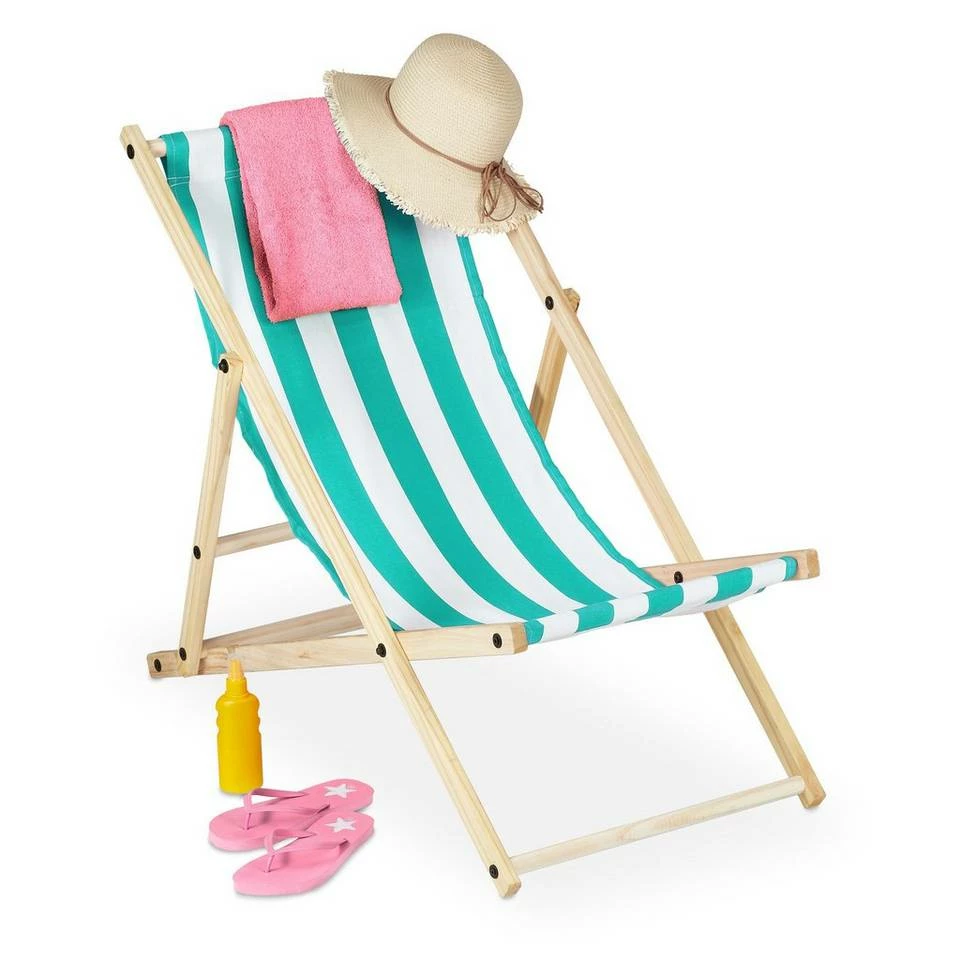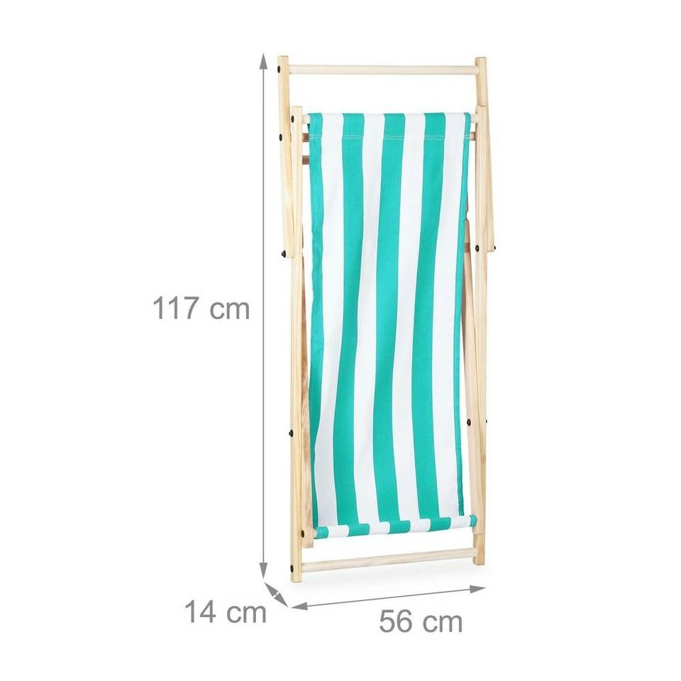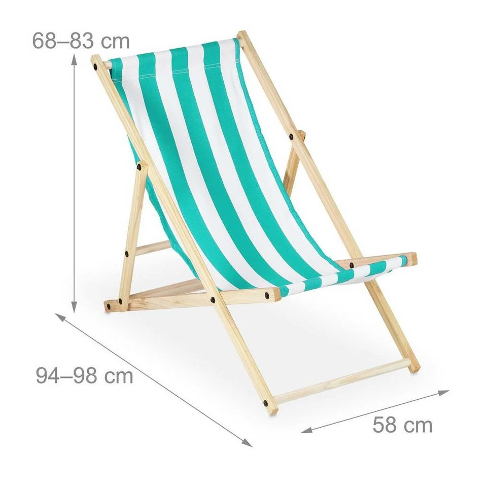 - Basics: Liegestuhl Höhe: ca. 68, 76, 83 cm – Breite ca. 58 cm – Aus Holz mit gestreiftem Stoffbezug