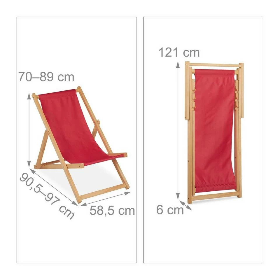 Roter Strandklappstuhl für Balkon Machen Sie es sich an der frischen Luft gemütlich mit diesem praktischen Holzliegestuhl. Der klappbare Outdoorliegestuhl besteht aus robustem Buchenholz und einer flexiblen Sitzfläche. Der Stoff der roten Sitzfläche ist ein strapazierfähiges Gewebe aus Polyester. Mit den 3 verschiedenen Höheneinstellungen, können Sie die Klappliege an Ihre bevorzugte Sitzposition anpassen. Sie können den Sonnenstuhl nach Gebrauch einfach zusammenklappen und platzsparend verstauen.