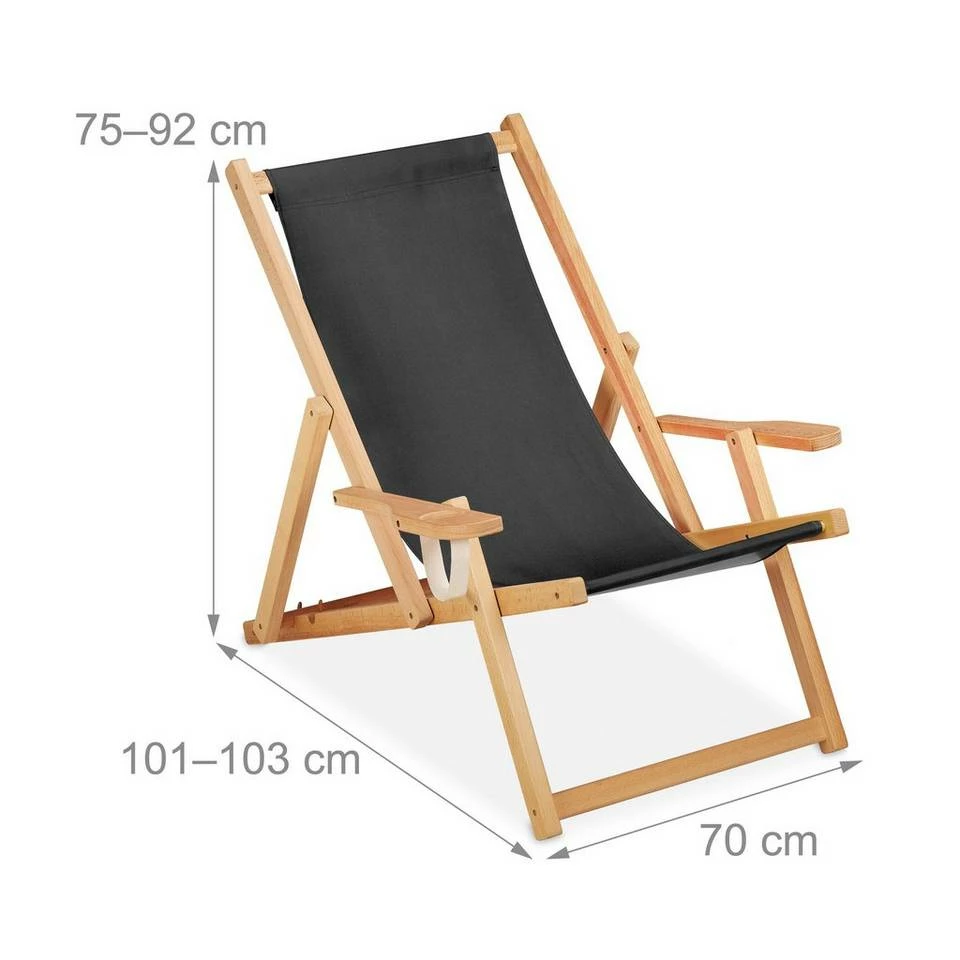 Klapp Liegestühle mit Armlehnen Mit dem praktischen Liegestuhl Set sind Sie bestens für den nächsten Strandurlaub gerüstet. Lauschen Sie den wogenden Wellen, während Sie es sich in komfortablen Faltliegen bequem machen. Der Armlehnen und der integrierte Getränkehalter sorgen für extra Komfort. Die flexiblen Sonnenstühle lassen sich zudem einfach auf 3 Ebenen in der Sitzposition verstellen. Aber nicht nur am Strand, auch beim Camping, auf dem Balkon oder im Garten bieten Ihnen die Stühle eine gemütliche Sitzgelegenheit.