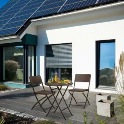 - Variabel: Das Balkon-Set dank Gummischonern auch in die Wohnung (z.B. auf Fliesen) gestellt und nach Gebrauch platzsparend gelagert werden