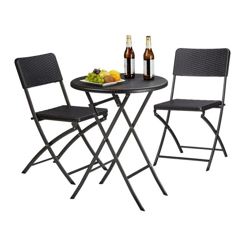- 3-teilig: Das Gartenmöbel Set Bastian in Schwarz besteht aus einem kleinen Klapptisch mit runder Tischplatte und 2 Klappstühlen