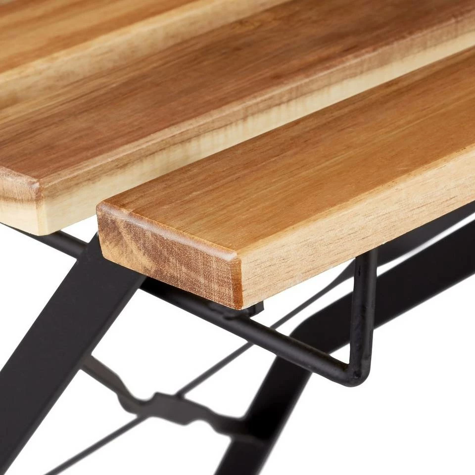 - Unempfindlich: Das geölte Holz in Naturoptik ist schmutzabweisend und lässt sich leicht reinigen, der mattschwarze Metallrahmen ist sehr robust