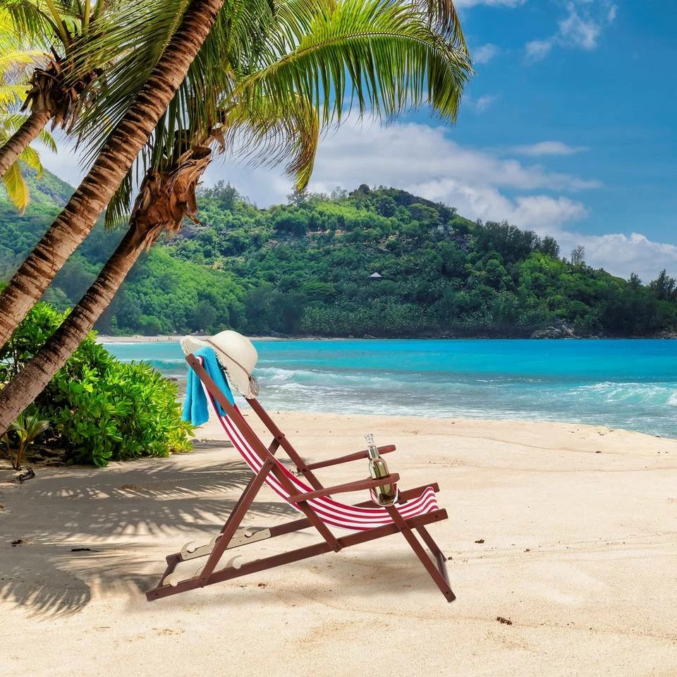 - Relaxen: Holen Sie sich Urlaubsfeeling nach Hause mit dem weiß-rot gestreiften Strandliegestuhl