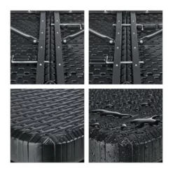 - Modern: Besteht aus witterungsbeständigem Kunststoff in Rattan-Optik, Gestell ist aus Stahl gefertigt