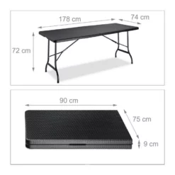 - Groß: An dem klappbaren Campingtisch BASTIAN in Schwarz H x B x T: 72 x 178 x 74 cm finden 8 Personen bequem Platz