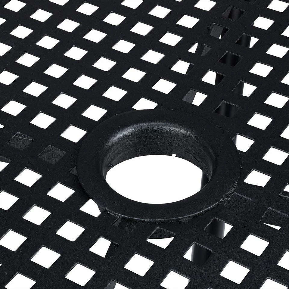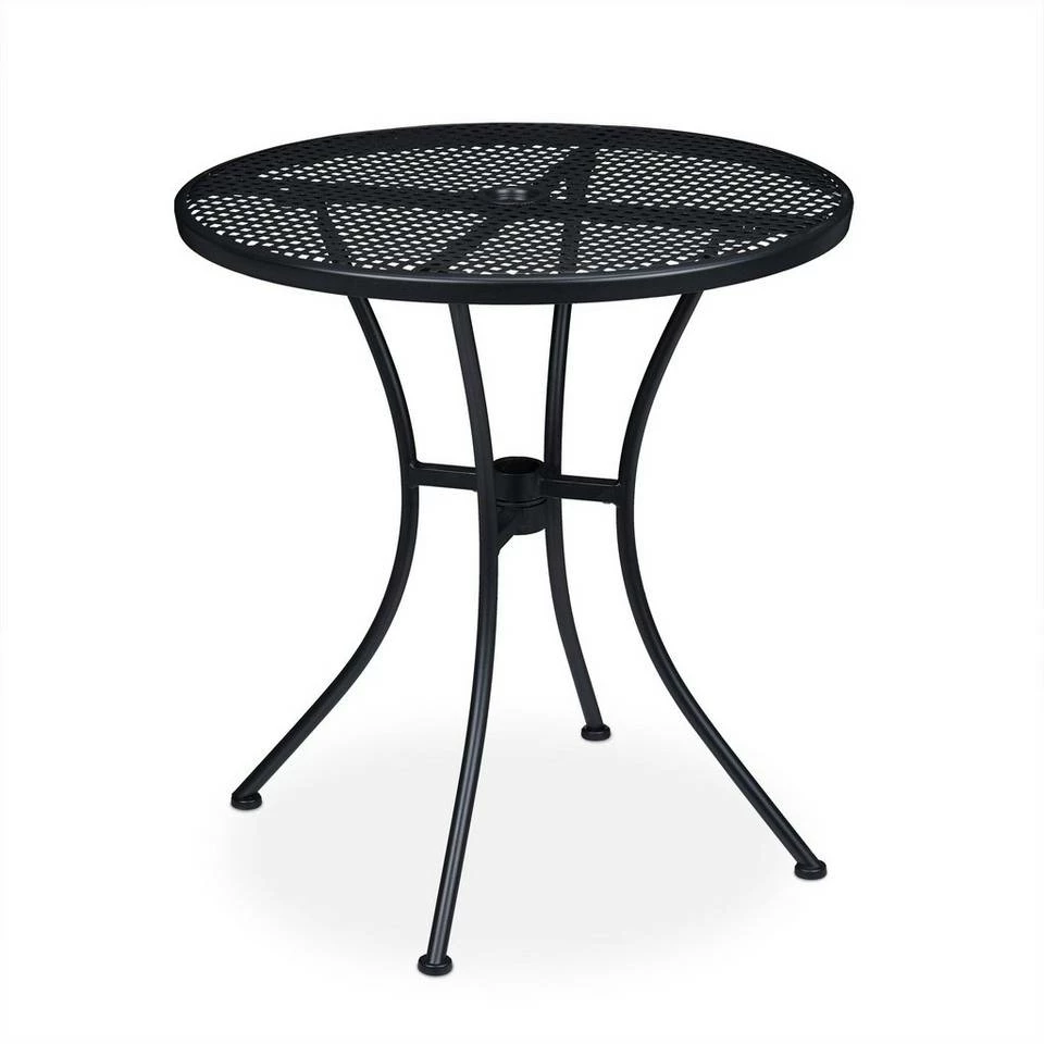 Wetterfester Balkontisch Kosten Sie den Sommer draußen aus und genießen Sie an dem dekorativen Beistelltisch das Frühstück, Kaffee trinken oder einfach ein Buch zu lesen. Stecken Sie Ihren Sonnenschirm durch das Loch in der Tischplatte und schon lässt es sich auch bei hohen Temperaturen gemütlich draußen aushalten. Der runde Metalltisch passt dabei sowohl auf die Terrasse, den Balkon oder den Rasen im Garten. Optisch überzeugt der Tisch mit seiner schlichten Farbe und der Tischplatte in Gitter Optik.