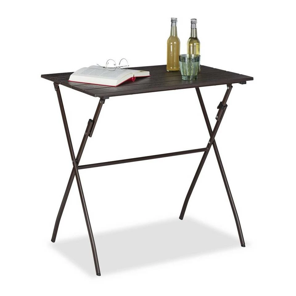 Vielseitiger Gartentisch in dekorativer Holz-Optik Machen Sie Ihren Garten, Ihre Terrasse oder Ihren Balkon mit diesem praktischem Mehrzwecktisch zu einer kleinen Wohlfühloase. Finden Sie im Grünen Erholung von einem stressigen Arbeitstag. Genießen Sie die Sonnenstrahlen beim gemütlichen Kaffeetrinken. Gerne zu zweit, denn die kompakte Größe des eckigen Gartentisches mit Platte im Holz-Look ist ideal für zwei Personen. Dank Klapp-Funktion ist der braune Outdoortisch schnell aufgestellt und kann bei Bedarf gefaltet in einer Ecke gelagert werden. Hinweise: Den Tisch nicht zu lange starker Sonneneinstrahlung aussetzen.