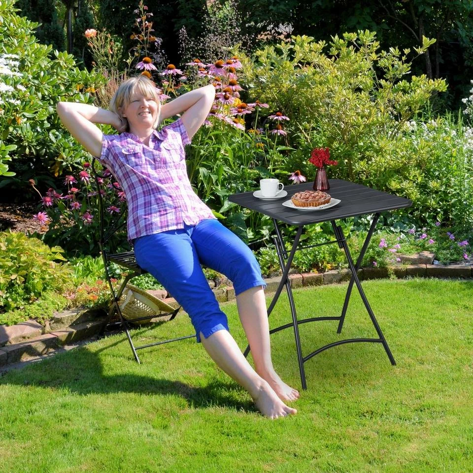- Wetterfest: Robuster Gartentisch aus pulverbeschichtetem Stahl – Ideal zur Nutzung im Außenbereich