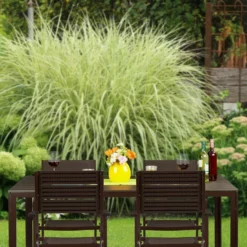 - Eckig: Rechteckiger langer Gartentisch in dunklem Braun – Größe H x B x T: ca. 74,5 x 155,5 x 78 cm