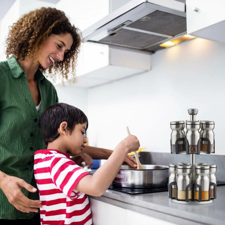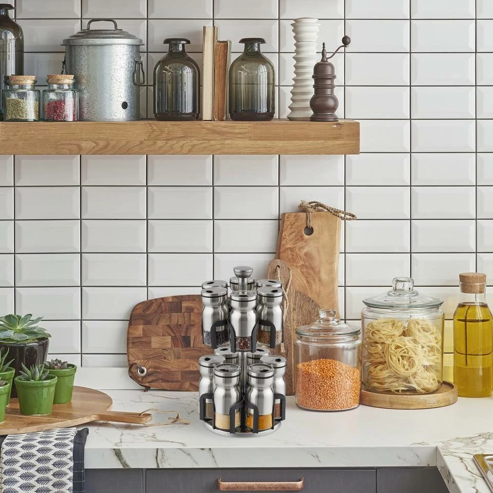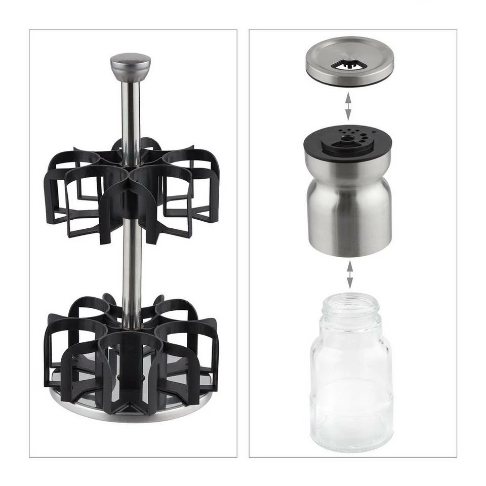 - Praktisch: Komplett drehbarer Gewürzständer – Alle Streuer beim Kochen und am Esstisch griffbereit