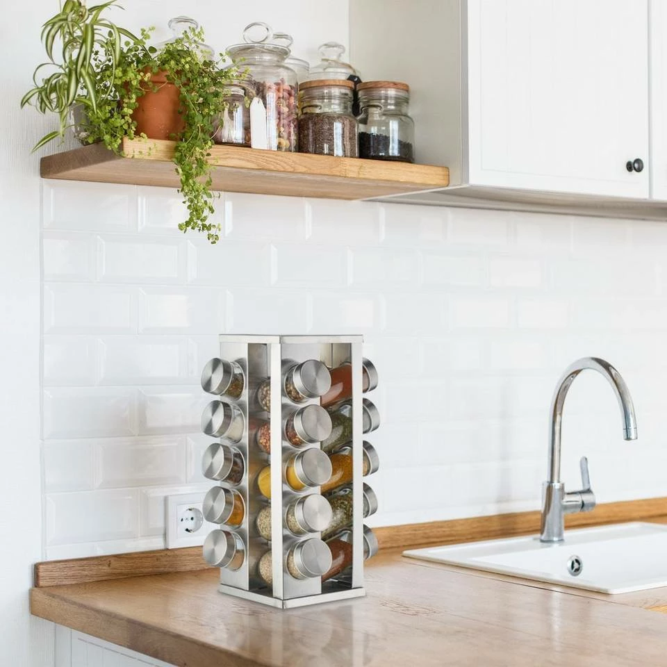 - Modern: Gewürzregal aus Edelstahl in eckiger, silberner Optik – Dekorativer Hingucker in Ihrer Küche