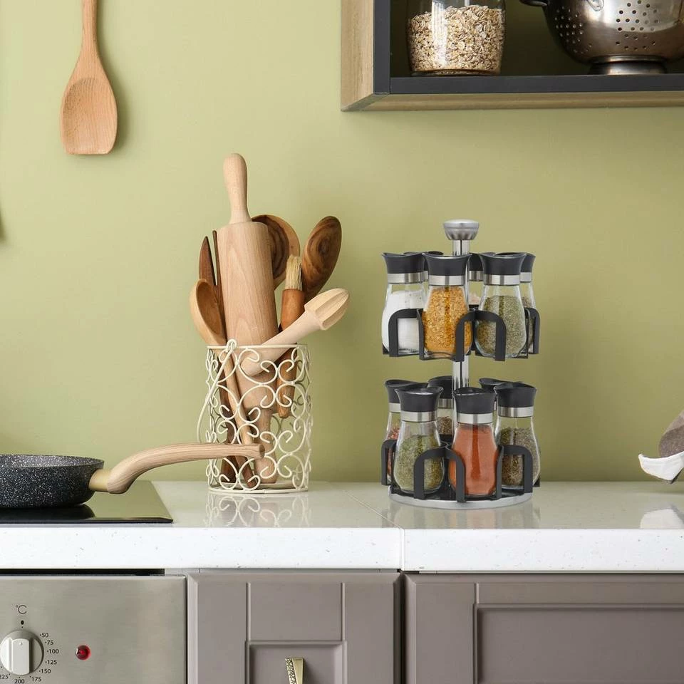 - Praktisch: Komplett drehbarer Gewürzständer – Alle Streuer beim Kochen und am Esstisch griffbereit