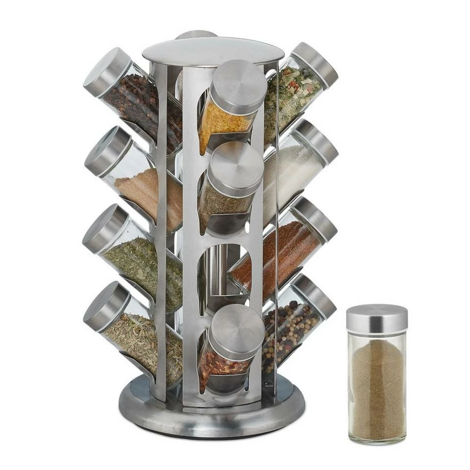 - Gewürzaufbewahrung: Gewürzkarussell für mehr Ordnung in der Gewürzsammlung – Inkl. 16 Gewürzgläsern