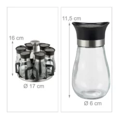 - Überblick: Gewürzrondell H x D: ca. 16 x 17 cm – Gewürzstreuer H x D: ca. 11,5 x 6 cm – Ohne Gewürze