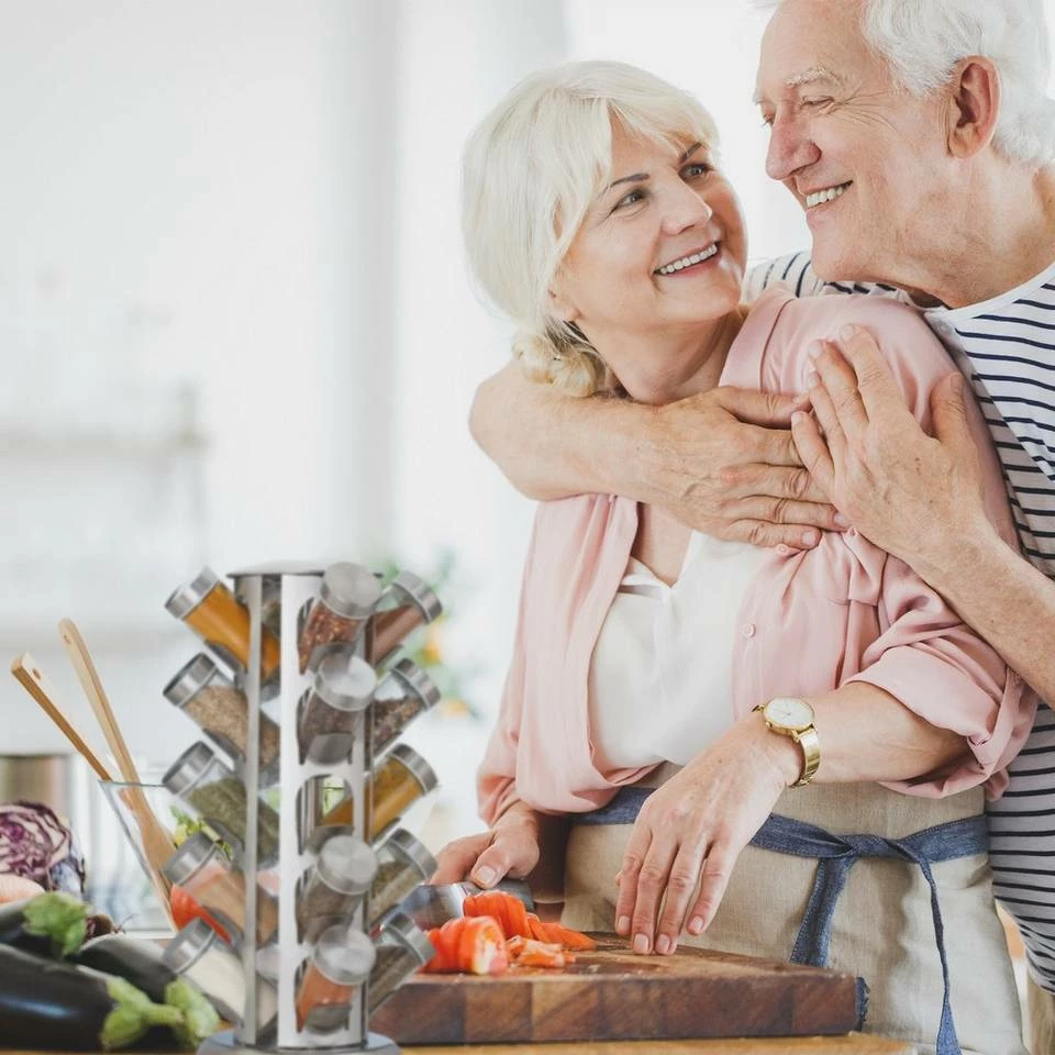 - Praktisch: Komplett drehbarer Gewürzständer – Alle Streuer beim Kochen und am Esstisch griffbereit