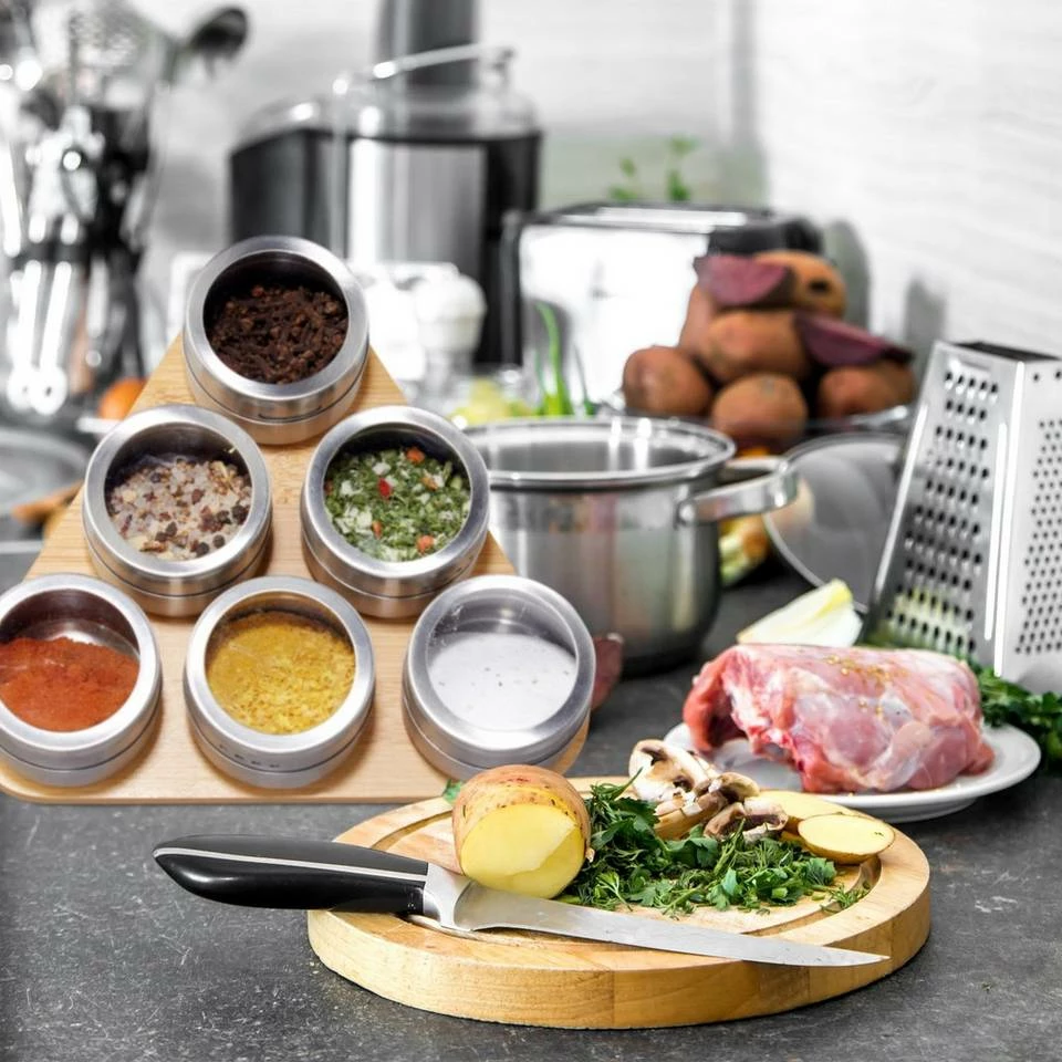 - Design: Magnetisches Küchengewürzregal aus Bambus zum Hinstellen – Gewürzdosen haften am Gewürzboard
