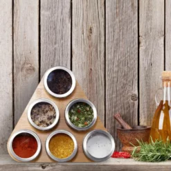 Magnetischer Gewürzspender für die Küche Der freistehende Bambus Gewürzhalter ist dekorativ und praktisch zugleich. Mit dem Würzregal haben Sie beim Kochen ihre Lieblingsgewürze und -kräuter immer griffbereit. Die 6 Gewürzdosen werden einfach platzsparend an dem magnetischen Gewürzboard angehängt. Durch die transparenten Fenster behalten Sie immer den Überblick über den Inhalt der Dosen. Dank der 2 verschiedenen Streuöffnungen können Sie die Würzmenge bequem dosieren. Der Materialmix aus Bambus und Edelstahl ist zudem ein optischer Hingucker auf dem Küchenregal.