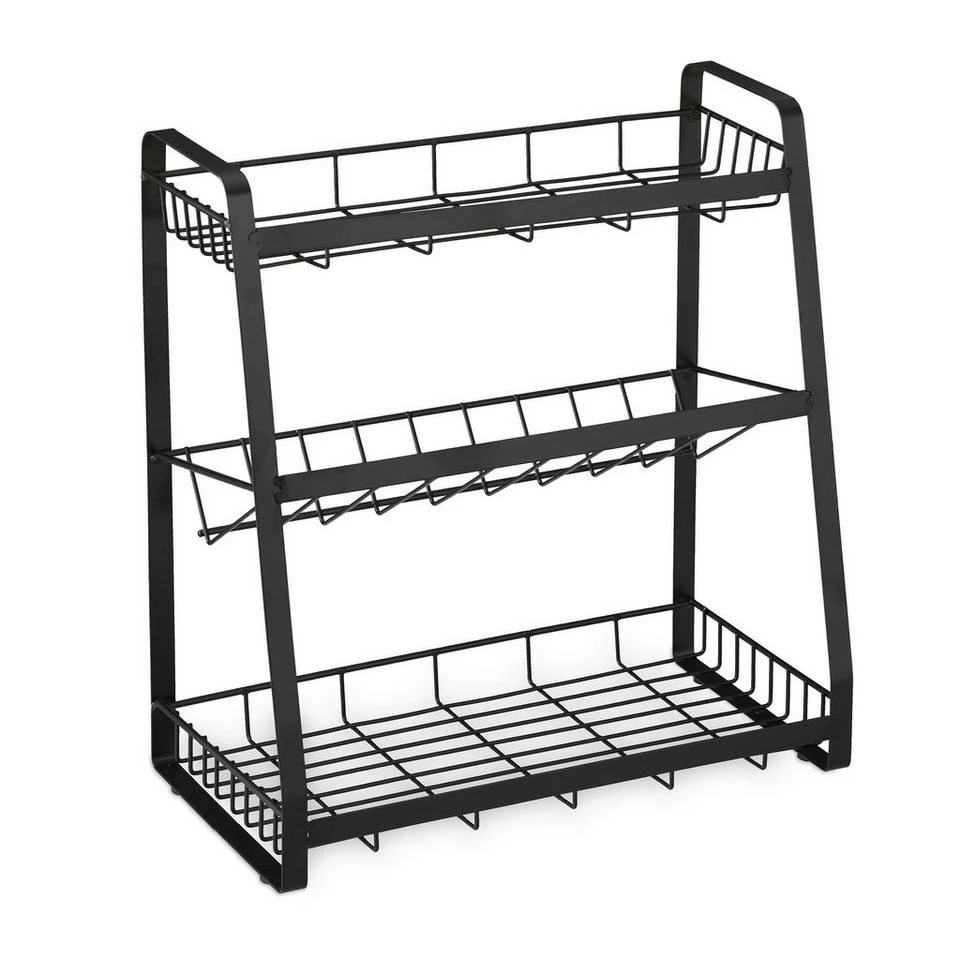 Gewürzhalter mit 3 Etagen Nutzen Sie den Platz in Ihrer Küche mit dem Gewürzorganizer optimal aus und sorgen Sie so für Ordnung. Auf den 3 Ebenen lagern Sie Gewürze, Tee, Kräuter, Dosen und mehr in der Höhe und behalten dadurch ausreichend Raum zum Kochen auf Ihrer Arbeitsfläche. Auf der schrägen mittleren Ablage legen Sie Essig- und Ölflaschen ab. So haben Sie Gewürze und Kräuter beim Kochen immer gleich zur Hand. Das moderne Design mit der Gitter Optik fügt sich schlicht in die Kücheneinrichtung ein.