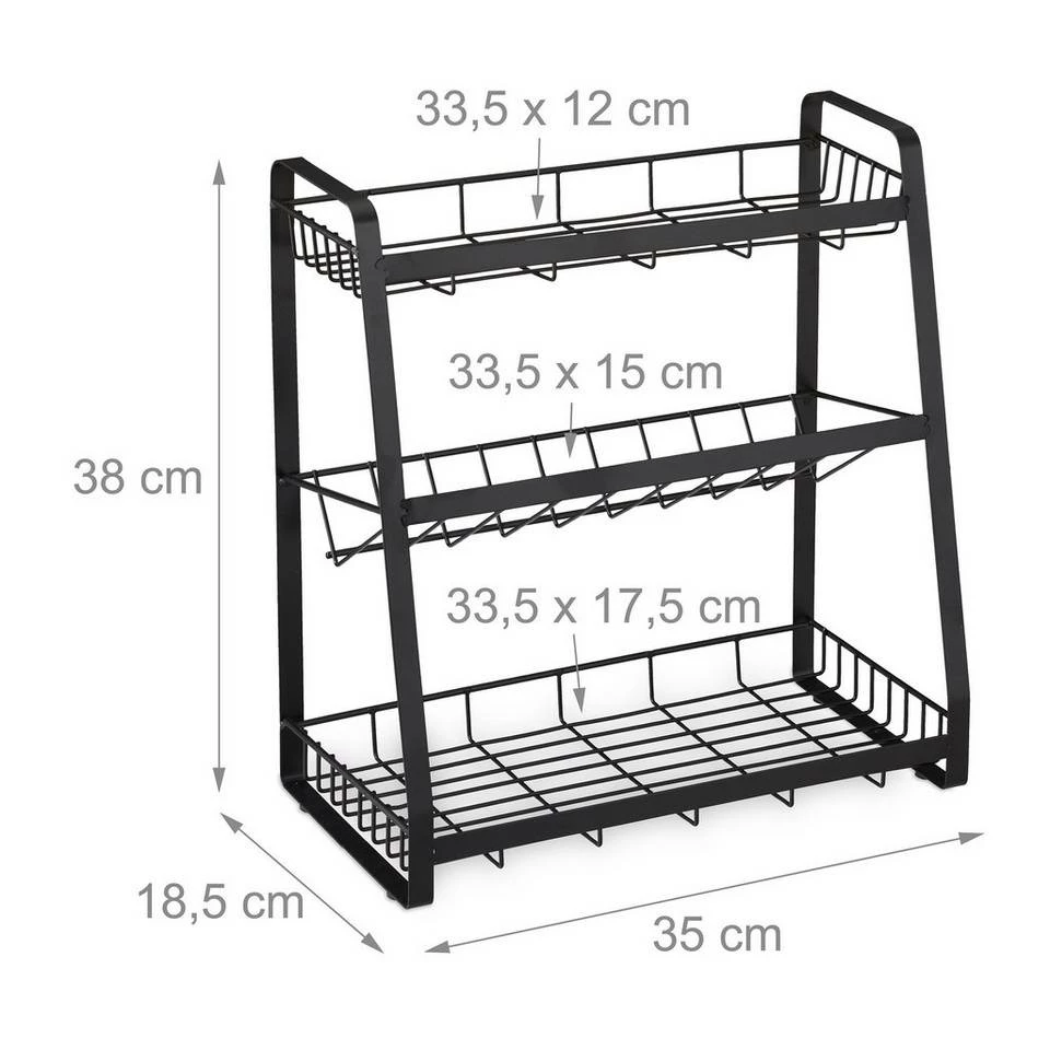 - Basics: Kräuterregal aus schwarzem Metall HxBxT: ca. 38 x 35 x 18,5 cm – Traglast je Ablage ca. 4 kg