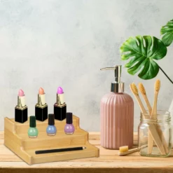 - Design: Stehender Gewürzorganizer aus natürlich gemasertem Bambus – Warme Optik passt in jede Küche