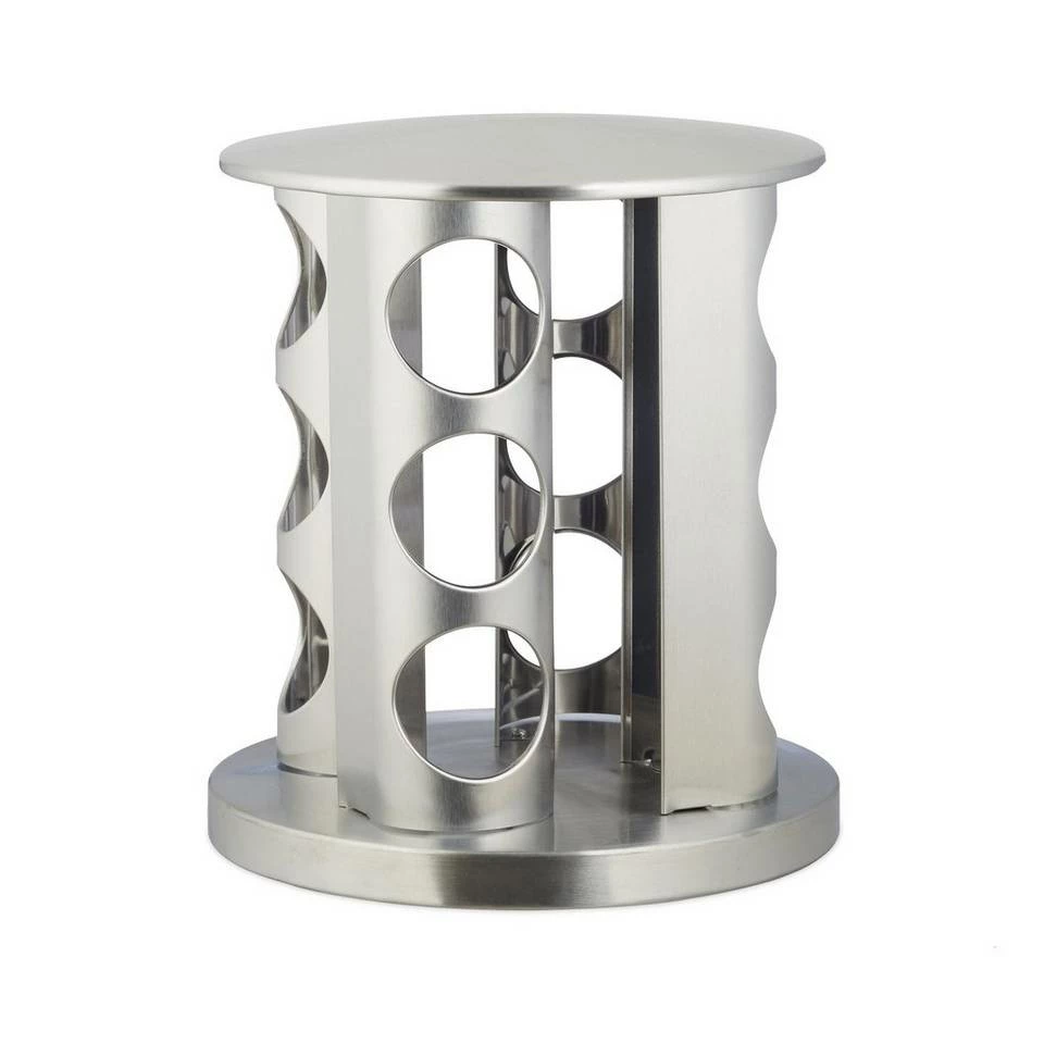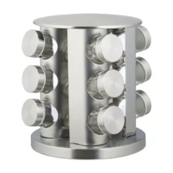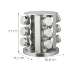 Praktisches Gewürzregal aus Edelstahl Beim Kochen die Gewürze immer griffbereit haben – das ist mit dem drehbaren Gewürzregal so leicht wie noch nie. In dem vielseitig verwendbaren Gewürzspender lagern Sie dank der mitgelieferten Behälter bis zu 12 verschiedene Kräuter und Gewürze. Diese sind luftdicht verschlossen und behalten somit ihr frisches Aroma. Auch sonst bietet das hochwertige Material optimalen Schutz. Kratzer und Korrosion haben keine Chance und die Reinigung ist problemlos in der Spülmaschine möglich. Auch optisch ist das Gewürzregal dank edler Oberfläche ein echter Hingucker.